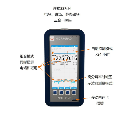 微納德 MICRORAD 專業(yè)全頻段電磁輻射測量儀套裝 PRO 3F,其測量范圍為 DC – 6.5GHz,是微納德推出的一款最新電磁輻射測量套裝,集合了最新的技術及制造工藝,并結 合高分辨率彩色觸摸屏操作界面,可實現高低頻電磁輻射測量。 PRO 3F 具備自動監(jiān)測功能(數據自動采集、保存),可通過 WIFI 模塊與手機進行實時 控制及數據采集,免去線纜連接的繁瑣,并顯示在 Windows 操作系統(tǒng)(PC、平板電腦)和 Android 設備(智能手機)上,設備可安裝 SD 卡進行數據存儲,非常適合用于現場的高低 頻環(huán)境測量,可針對不同環(huán)境下的高低頻電磁輻射進行精確地測量,即使是在復雜的電磁輻 射環(huán)境中,仍能實現對靜態(tài)磁場(如地磁場)、電氣化鐵道(如磁懸浮列車)、高壓輸變電 系統(tǒng)(如發(fā)電廠、高壓線、變電站),以及電視塔、廣播電臺、雷達、運營商通信基站等各 類電磁設施的電磁輻射的綜合測量